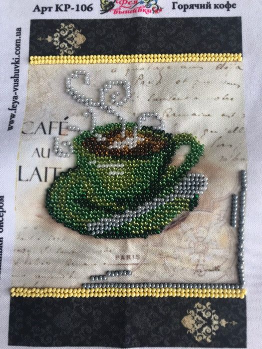"Запашна кава" картинка вишита чешським бісером. Гарна ідея для подарунка, або прекрасний аксесуар для вашої кухні.