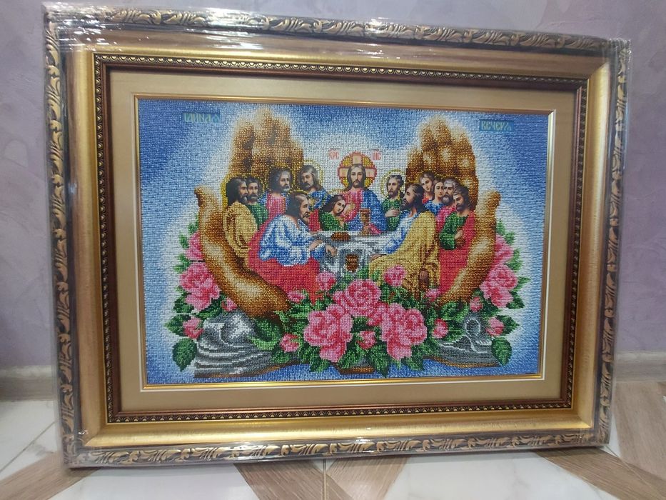Ікона Тайна вечеря,вишита бісером у рамці ,розміром 43см×34см ,освячена ,можливий торг