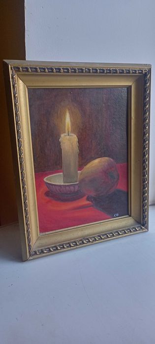 Авторська інтерьєрна картина Яблоко Єви виконана акрилом в смішаної техниці із застосуванням мастехину і золочення. Торс оголеної жінки виконані мастихіном з додаванням металізованих акрилових фарб виглядає то ніжним, то хтивим. Це яблуко. Воно вже надкушено дає знання тим, хто його скуштував. Два профілі читаються в місці укусу - один ефімерний повітряний і другий золотий матеріальний і позбавлений духовності. Яблуко - торс оздоблено узорчою тканиною, щоб передати негу сходу і контрастує з геометричною тінню як життя контрастує зі небуттям. Розмір картини 60х60 см. картина в художньої рамці з єлементами золочення. Це чудове доповнення до вашої спальні. Любов і радість будуть панувати у неї.